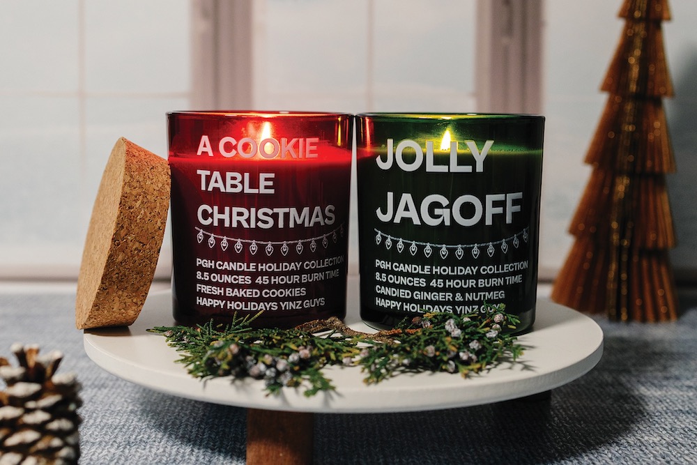 A cookie table and jagoffs are both Pittsburgh traditions — although this jagoff is welcome at the holiday gatherings. PGH Candle’s A Cookie Table Christmas and Jolly Jagoff candles will fill your home with the scent of joy.