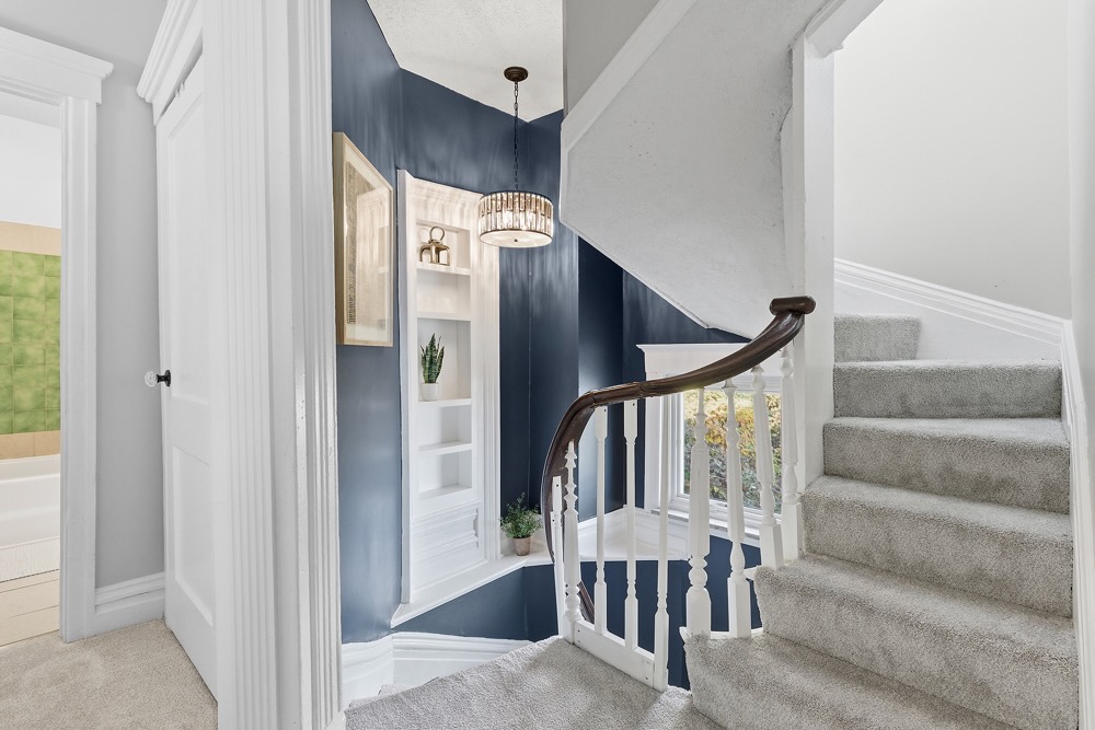 “Keeping the original trim, the decorative corbels and the curved staircase balustrade was really important to me,” he says. “It still feels like an old Pittsburgh house, in the best way — just one that works for how people live now.”